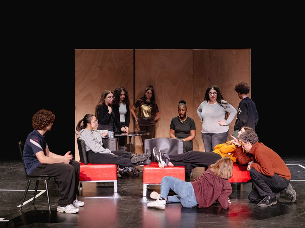 19 jeunes de la Métropole de Lyon, âgés de 14 à 22 ans, ont partagé depuis septembre l’aventure d’une création théâtrale dans des conditions semi-professionnelles sous la houlette de la metteuse en scène Maïanne Barthès. Ces jeunes, qui ne se connaissaient pas avant, ont été réunis par 3 théâtres partenaires : Le Théâtre de la Croix-Rousse à Lyon, La Mouche à Saint-Genis-Laval et La Machinerie à Vénissieux. Sur leur temps libre, pendant les vacances scolaires et sur deux week-ends, les jeunes ont bénéficié de 90 heures de pratique artistique et ont expérimenté toutes les dimensions du processus de création d’une œuvre.